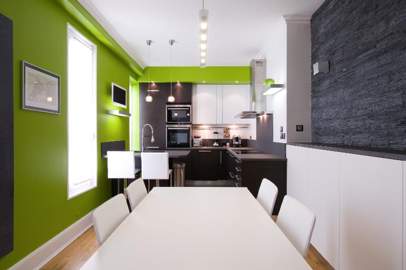Meubles de cuisine : Armony Cucine, modèle Beta, finition chêne wengé et laqué neige mat.